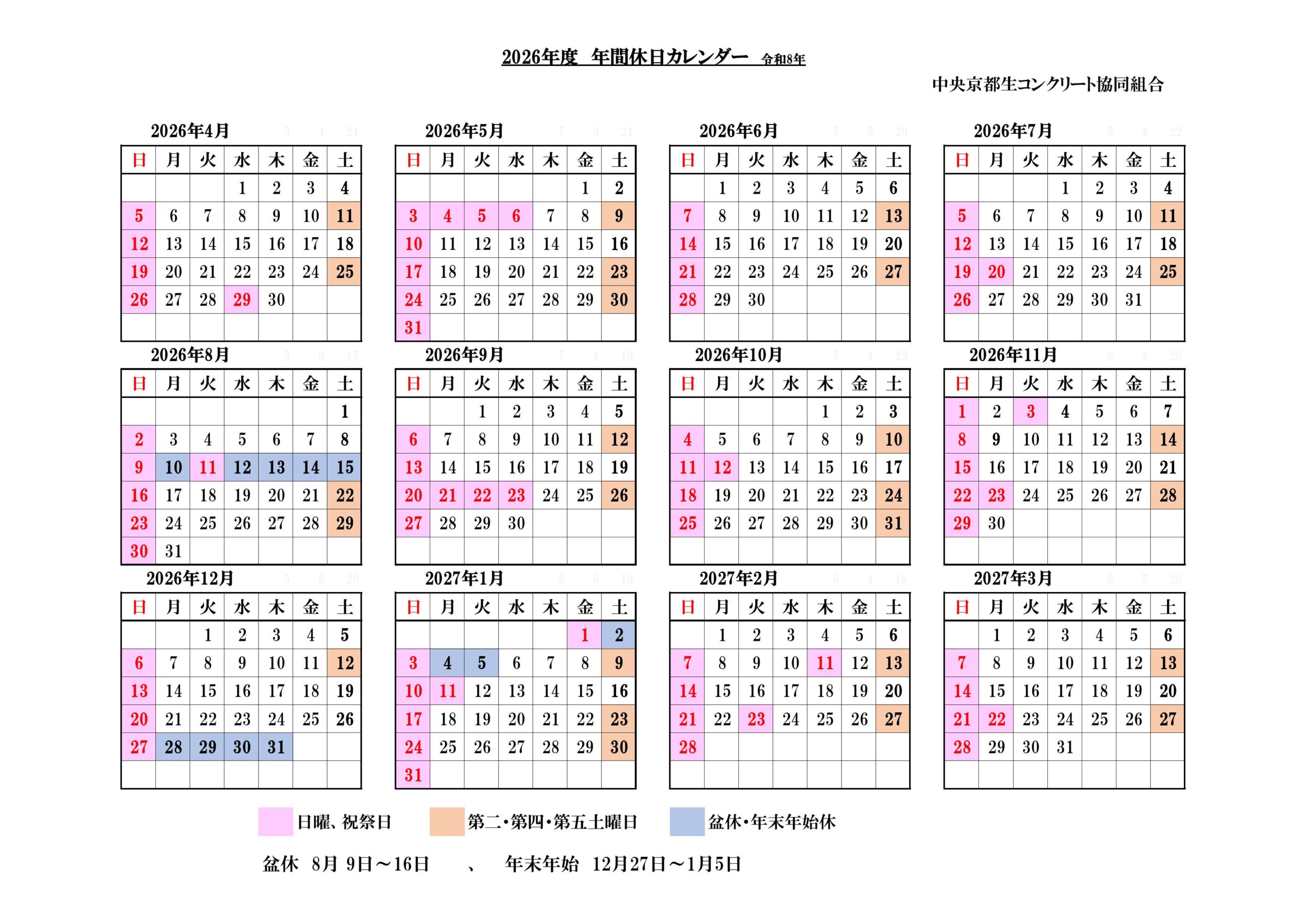 営業日カレンダー